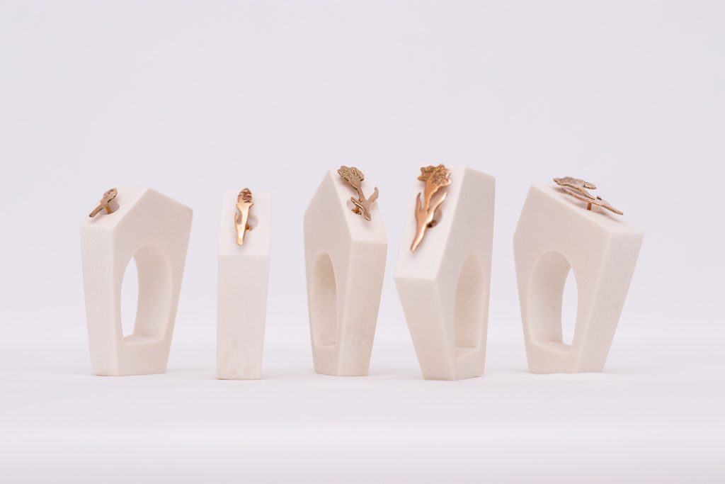 As peças foram criadas com recurso à caneta 3D, o que antes era marcado na pedra ganha volume com a mesma intenção: registar, lembrar, comunicar. Não é sobre mostrar, é sobre lembrar, levar ao corpo aquilo que nos liga ao que veio antes.